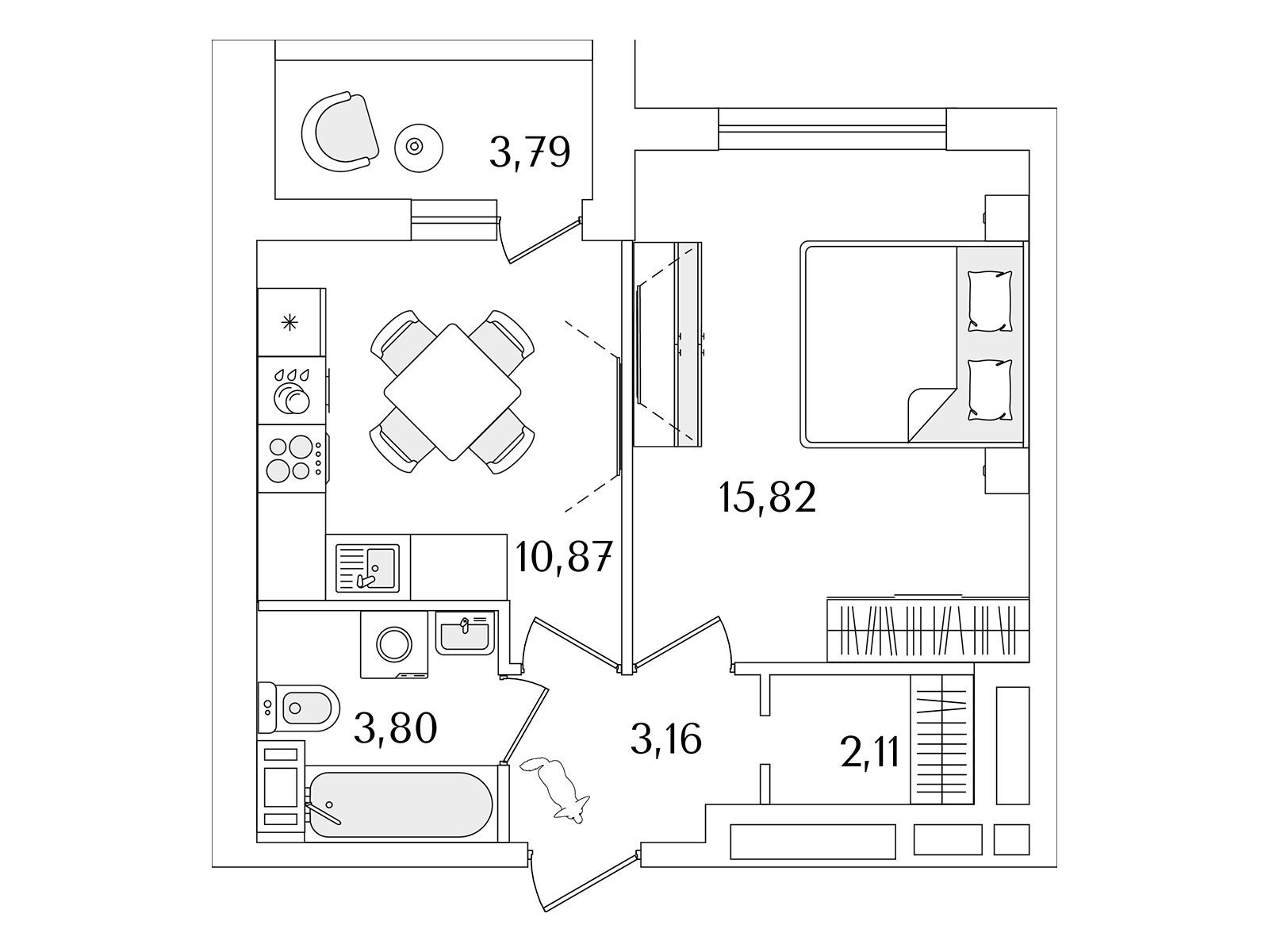 1-комнатная, 35.90 м²