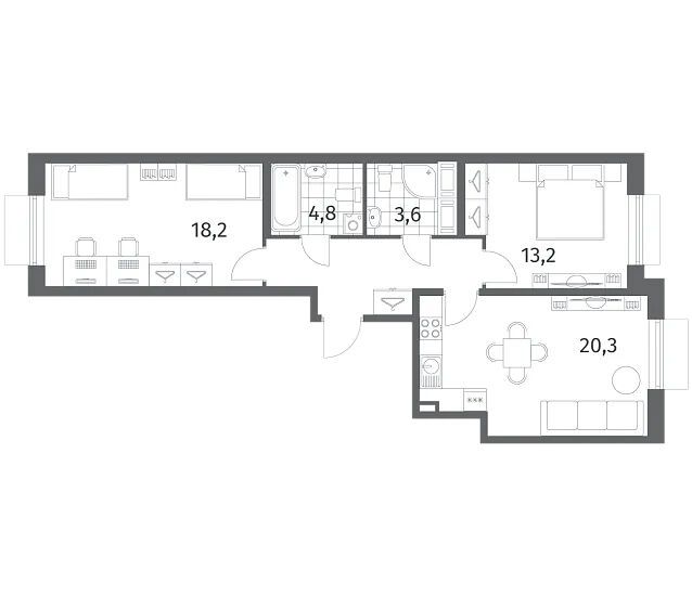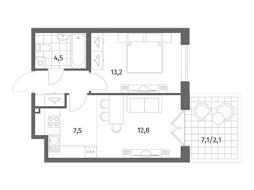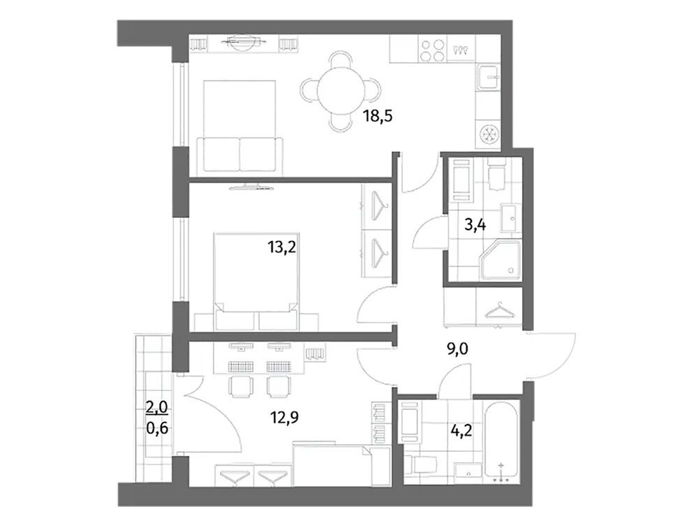 2-комнатная квартира, 63.00 м², 7 из 13 эт.