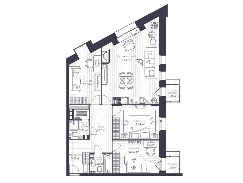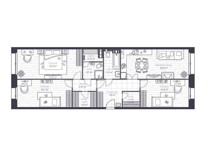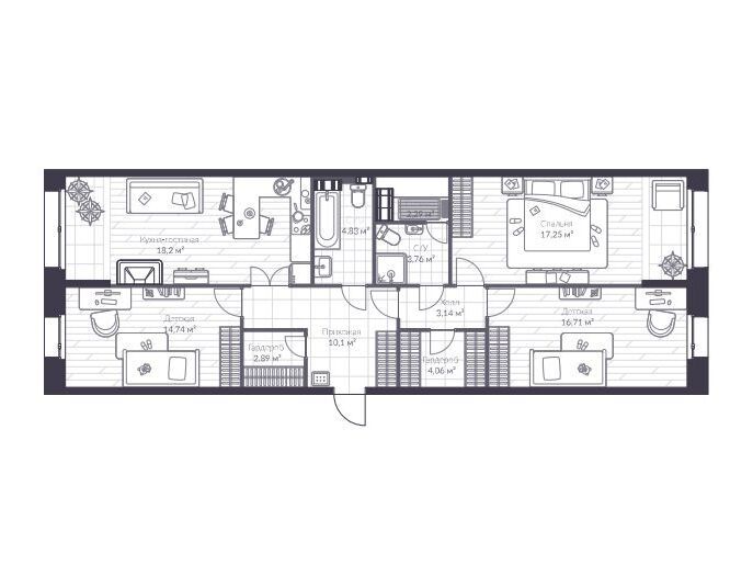 4-комнатная квартира, 107.00 м², 2 из 3 эт.