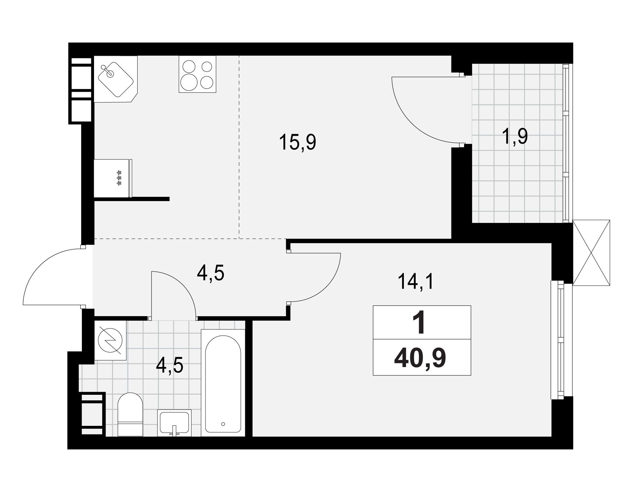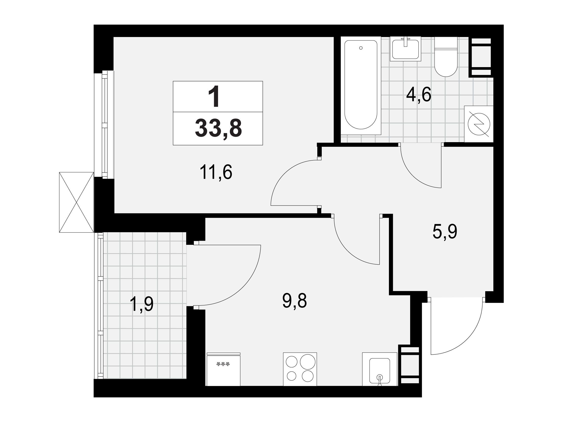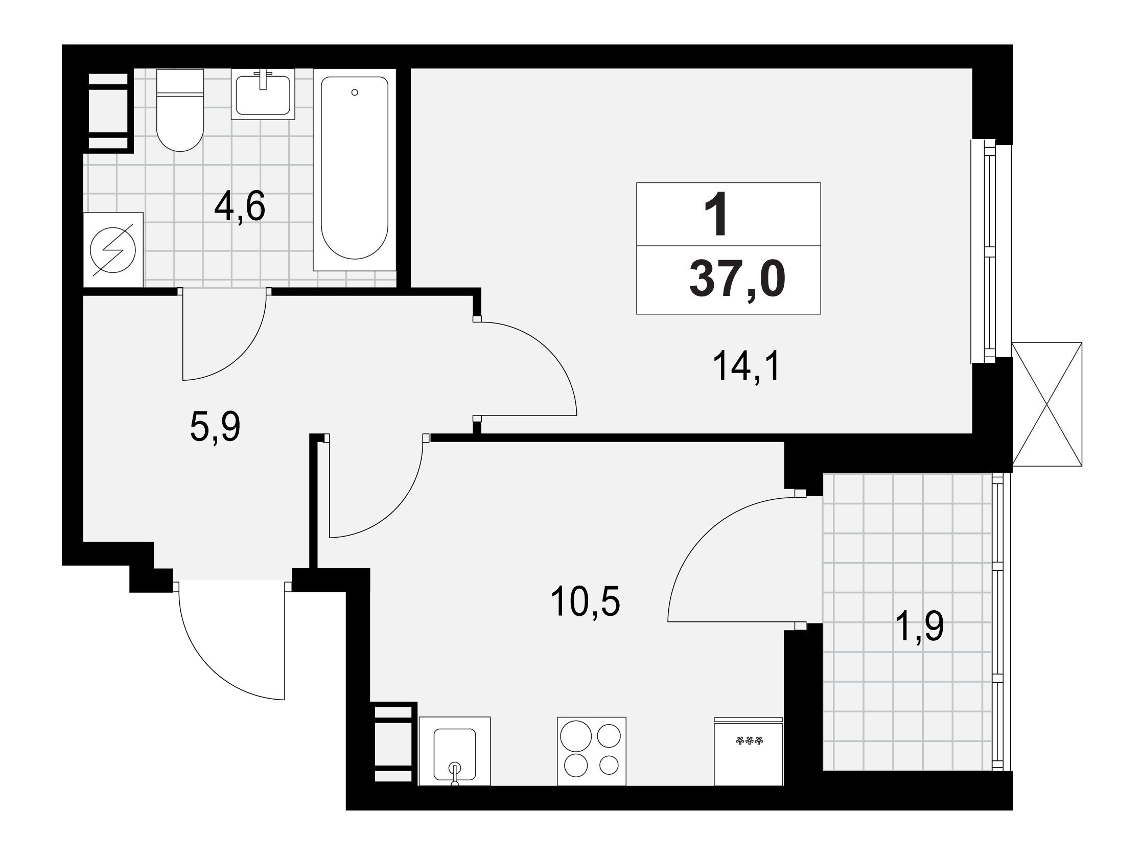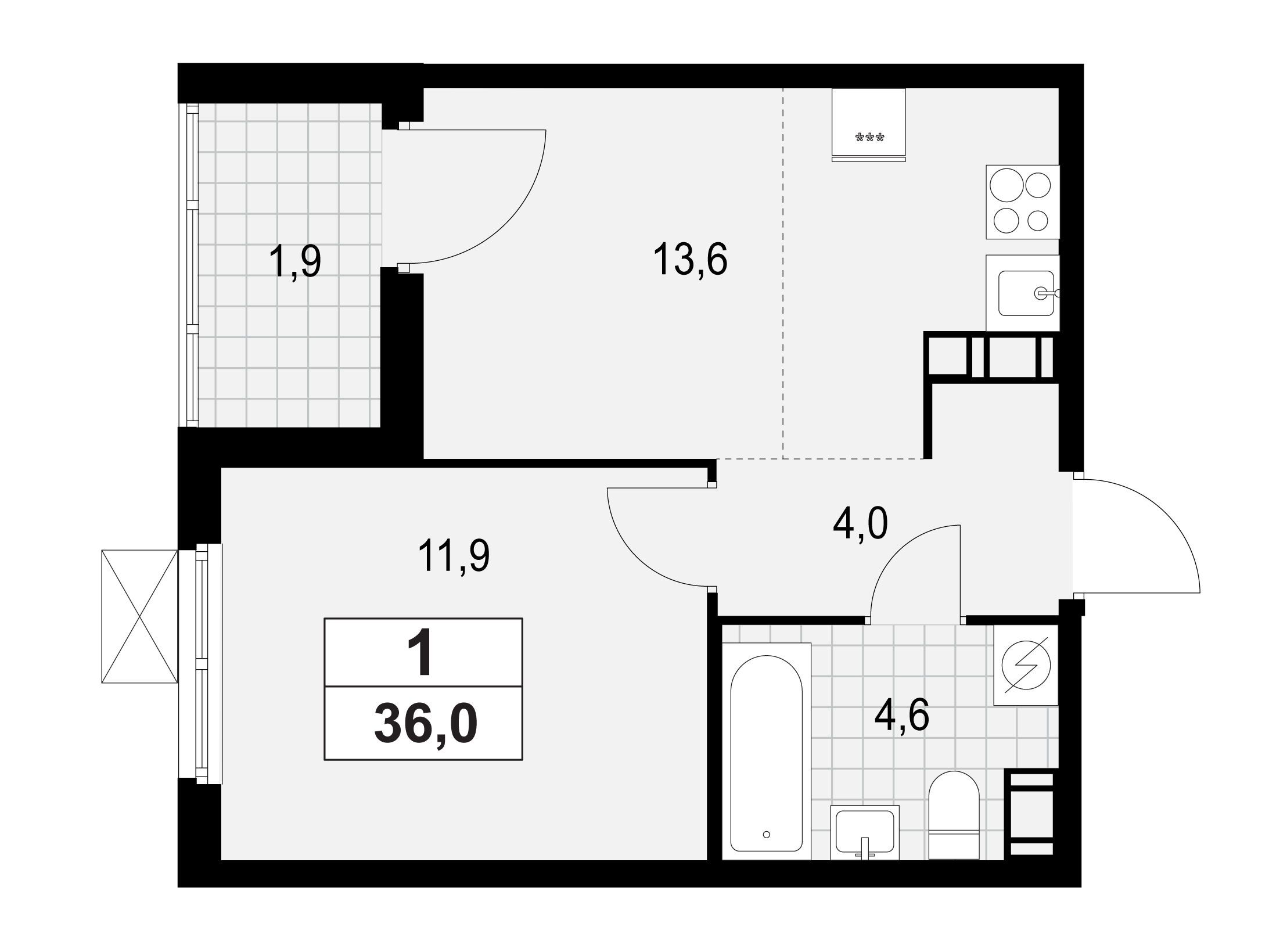 1-комнатная, 36.90 м²