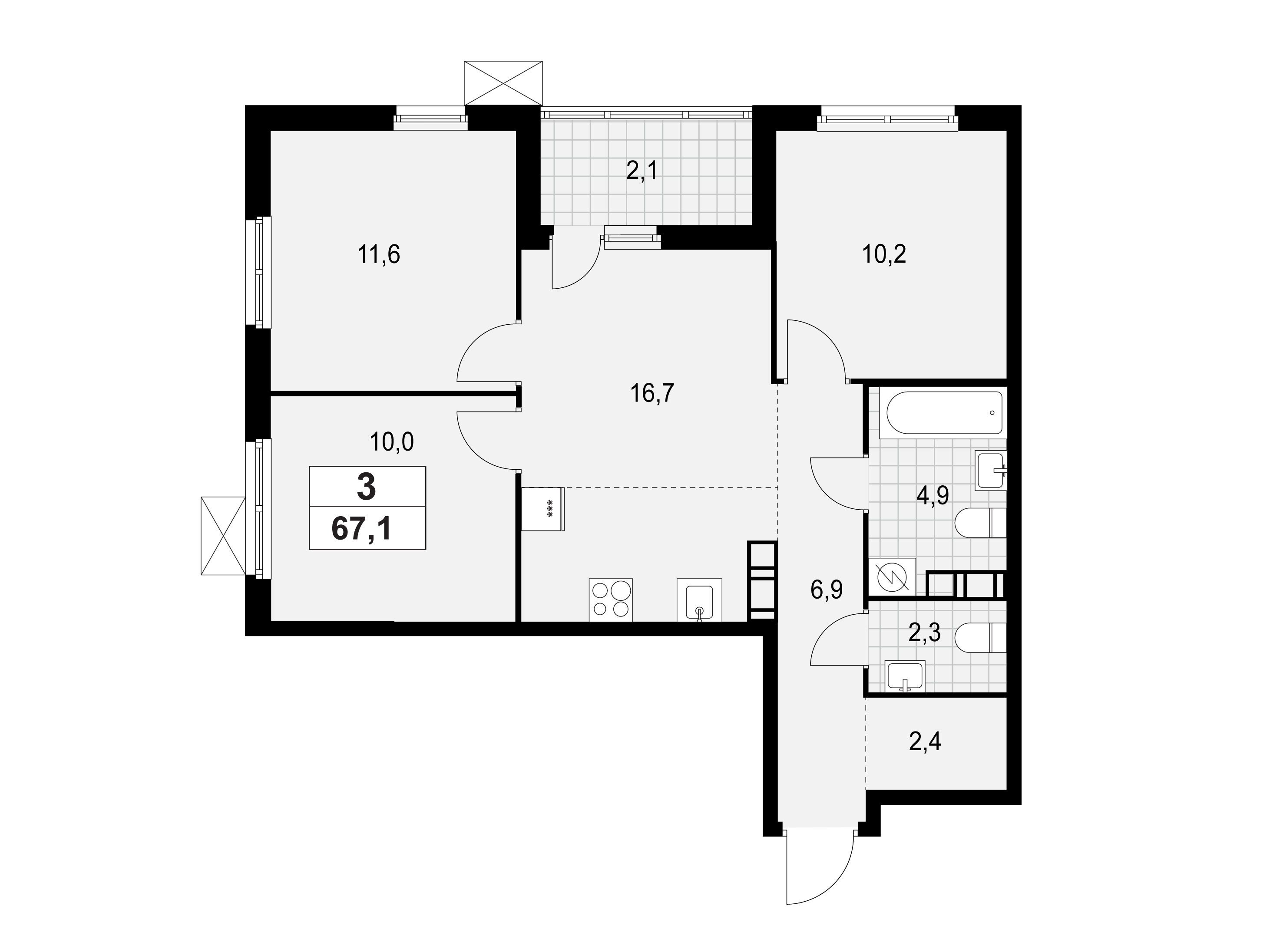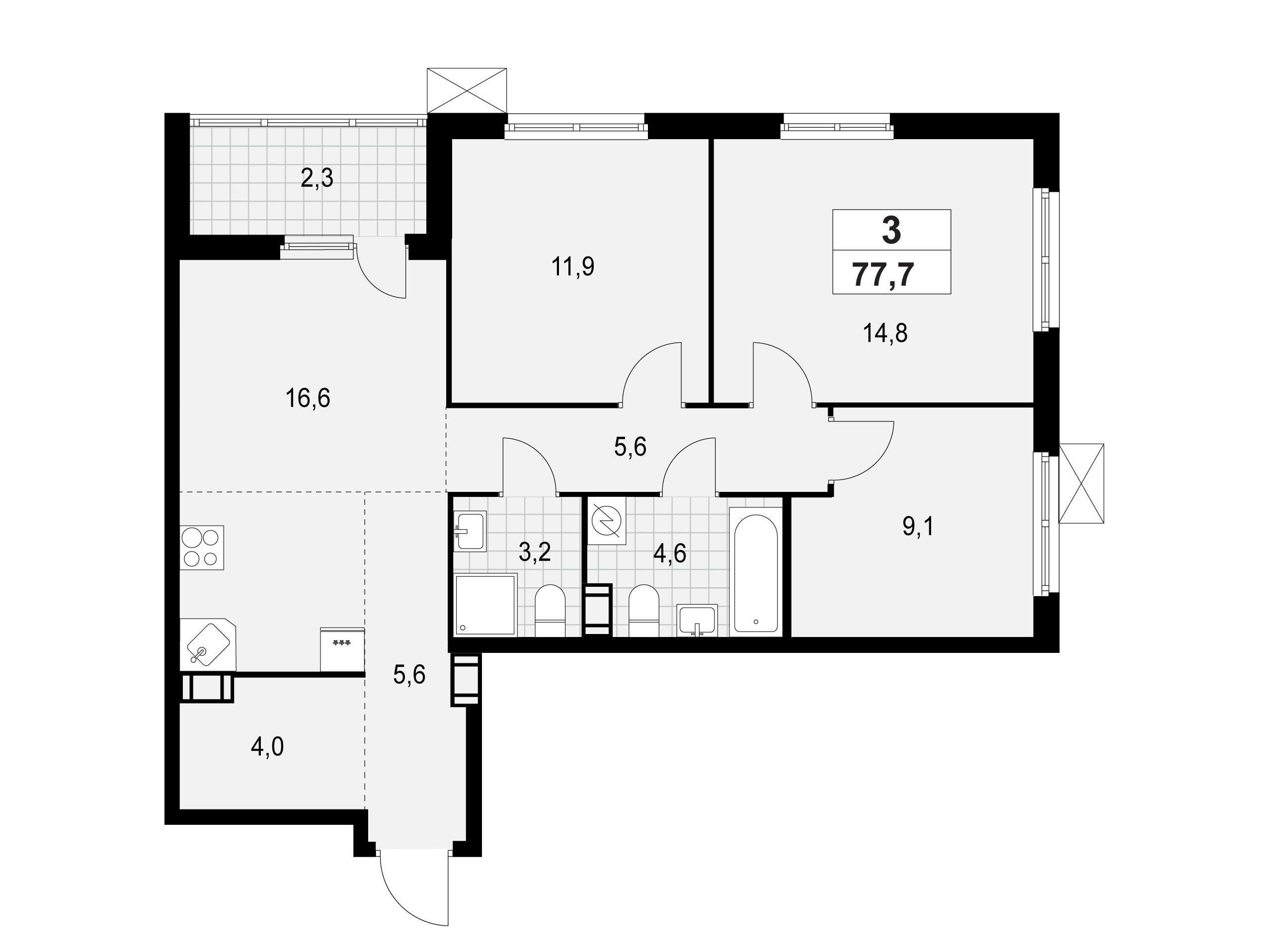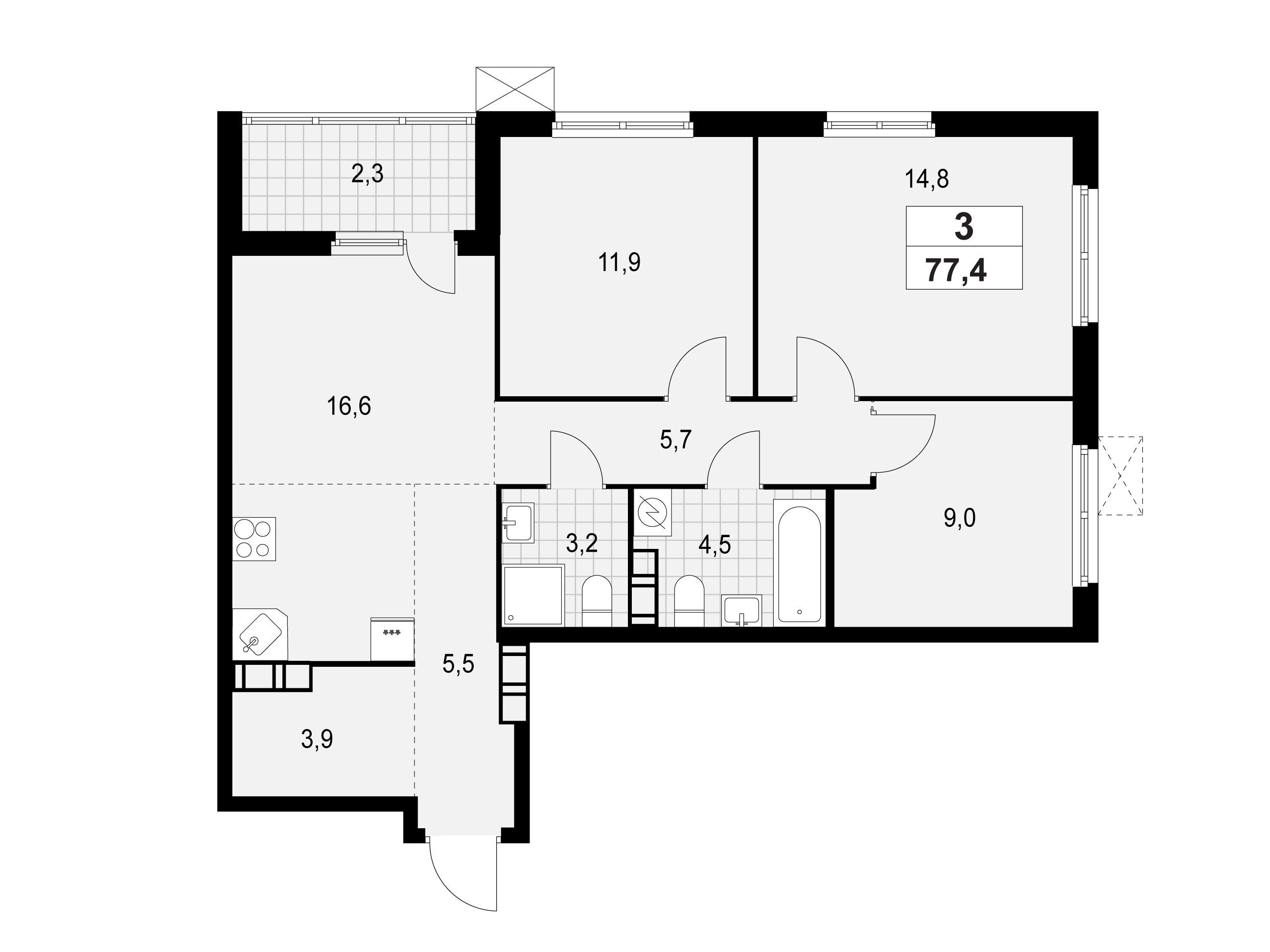 3-комнатная квартира, 77.40 м², 9 из 13 эт.