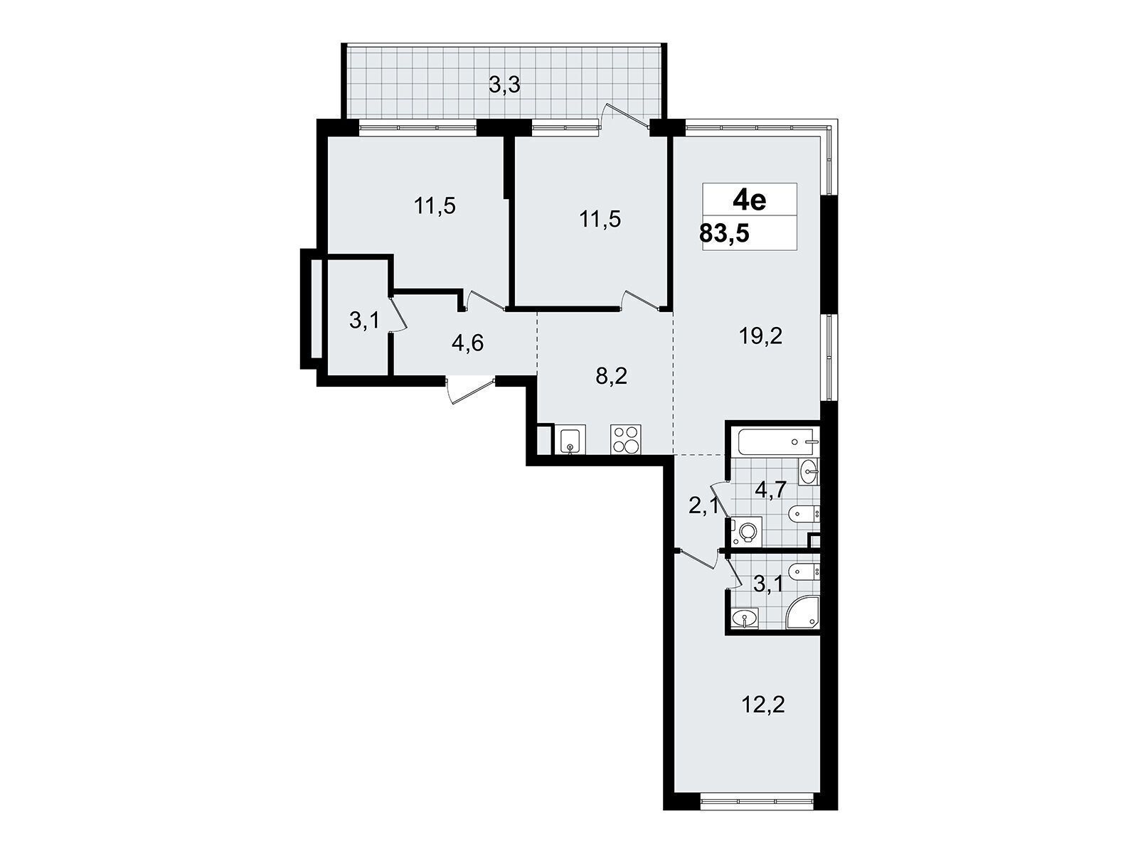 2-комнатная, 47.30 м²