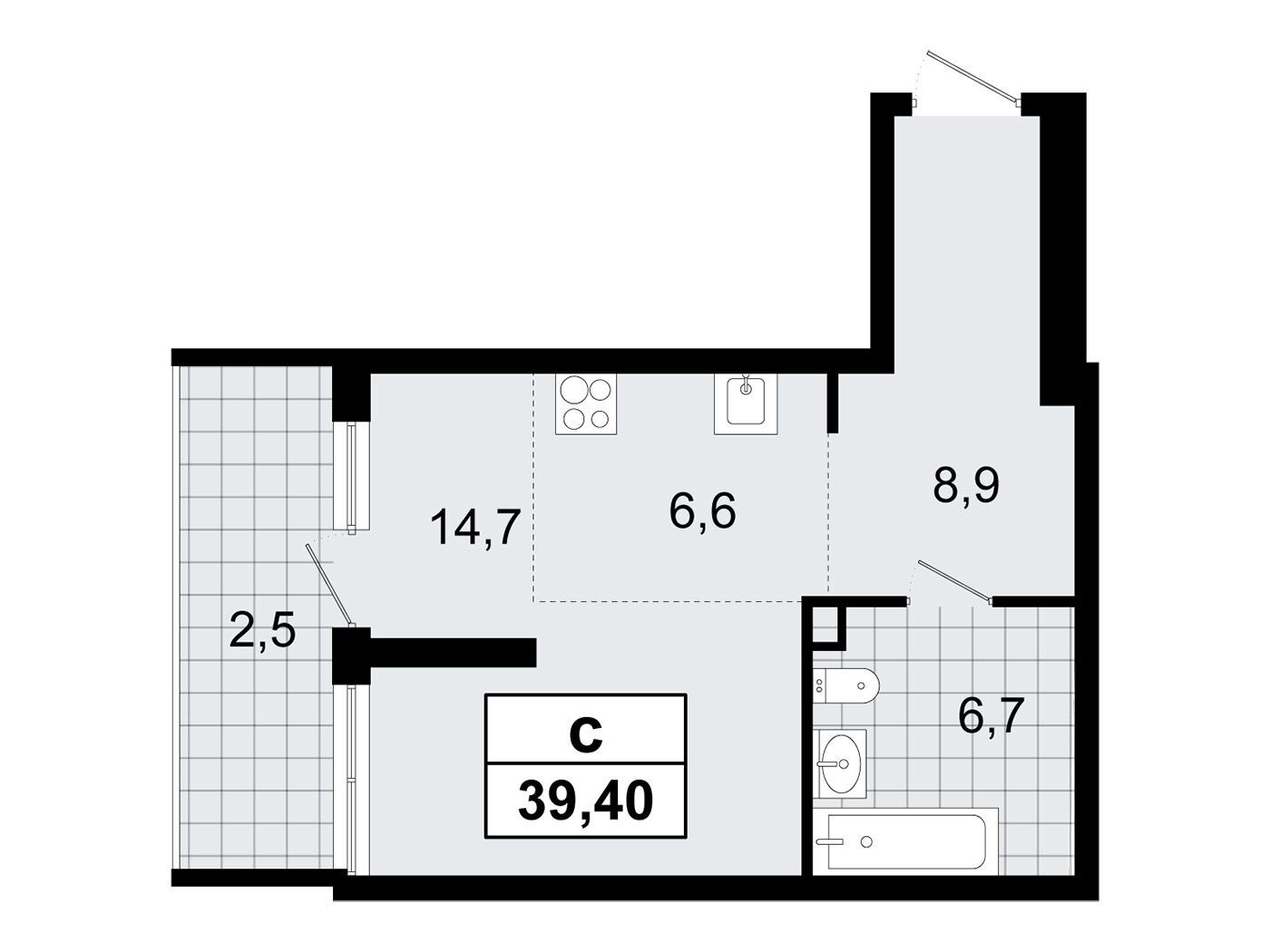 Студия, 20.80 м²