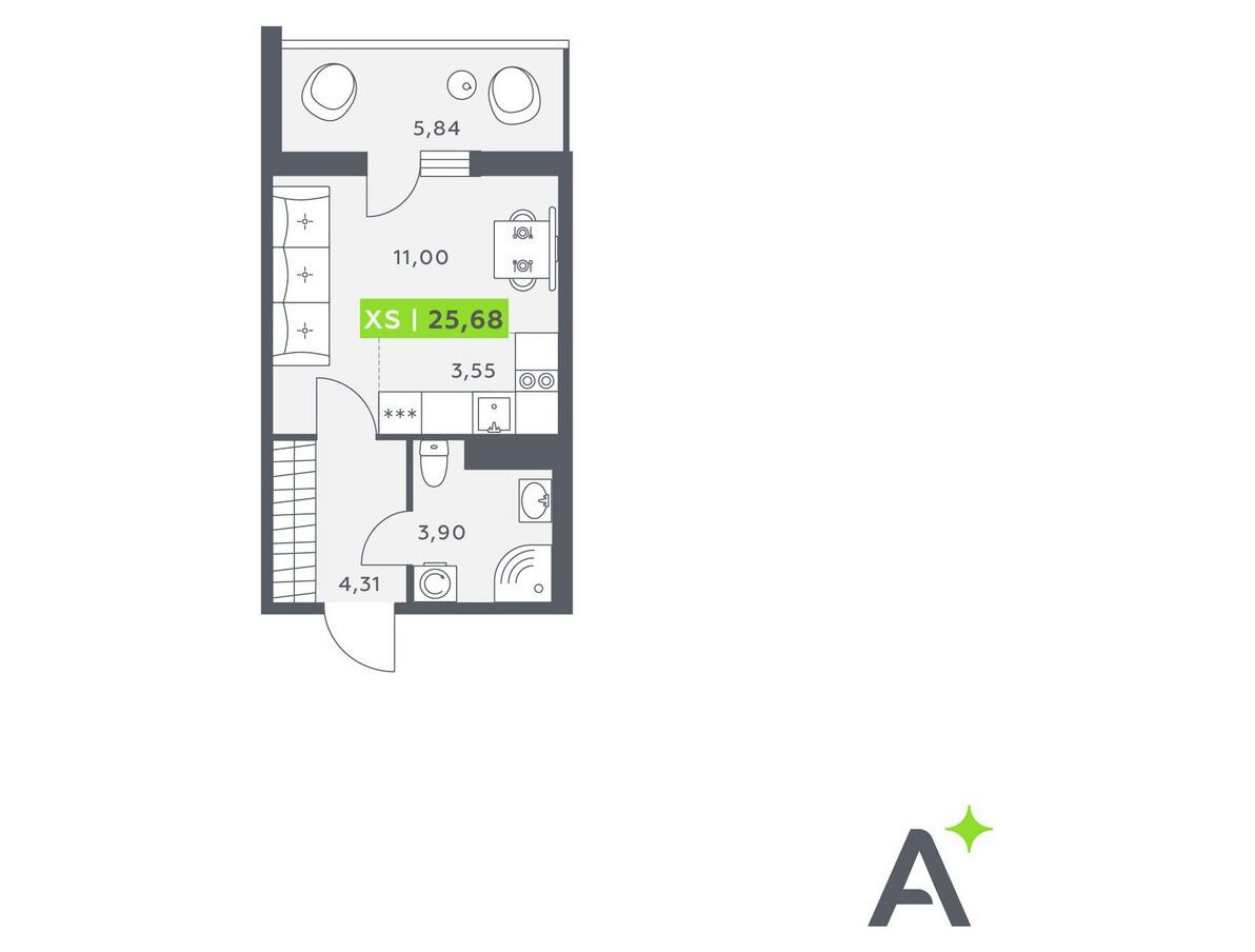 Студия, 25.65 м²