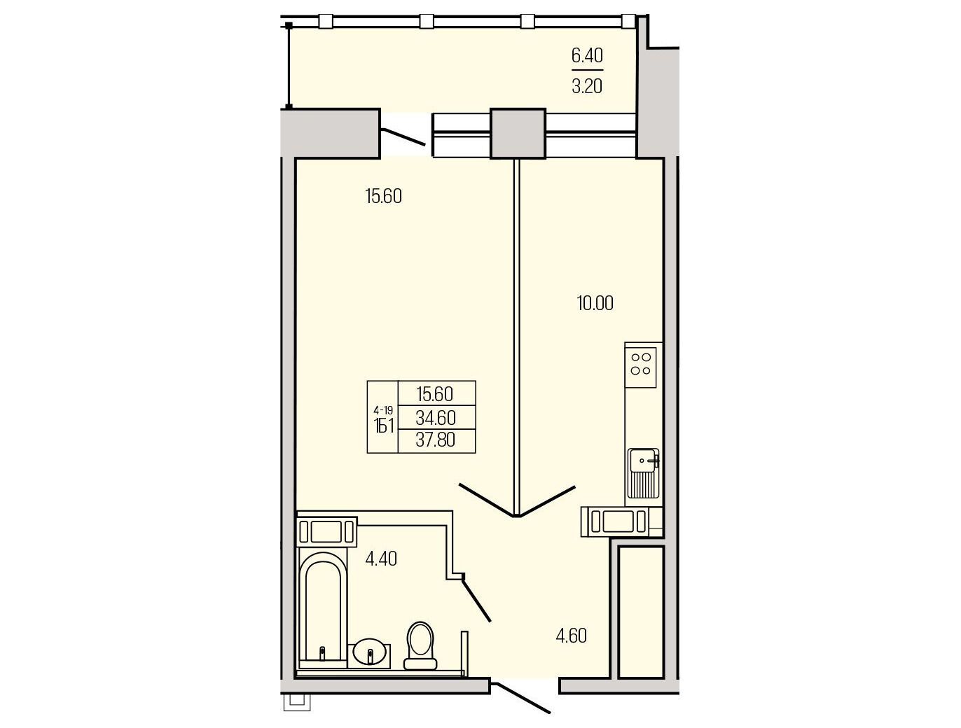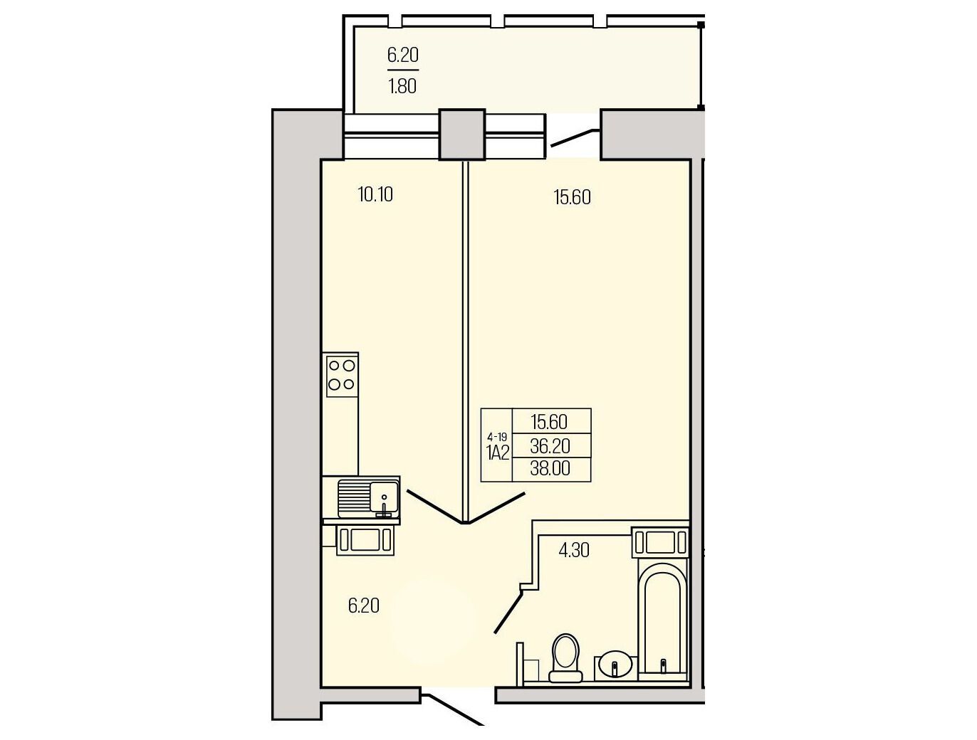 1-комнатная, 35.00 м²