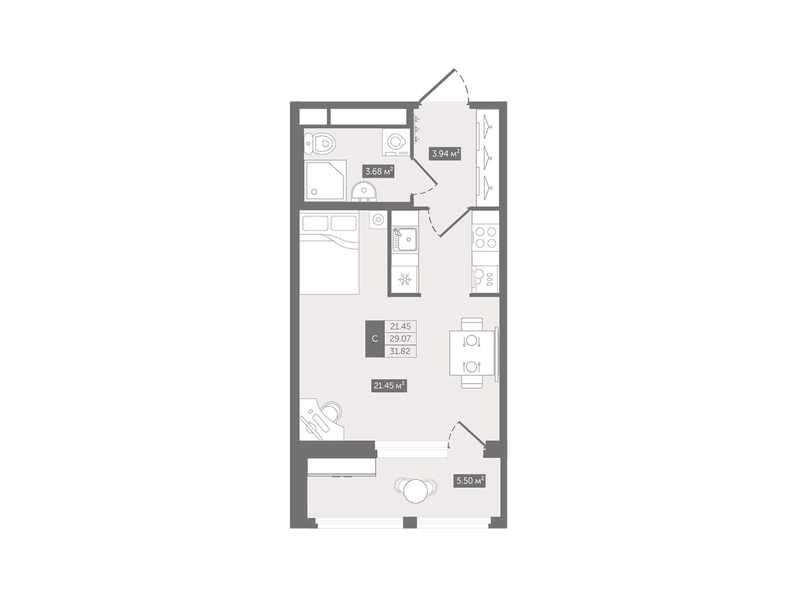 Студия, 31.82 м²