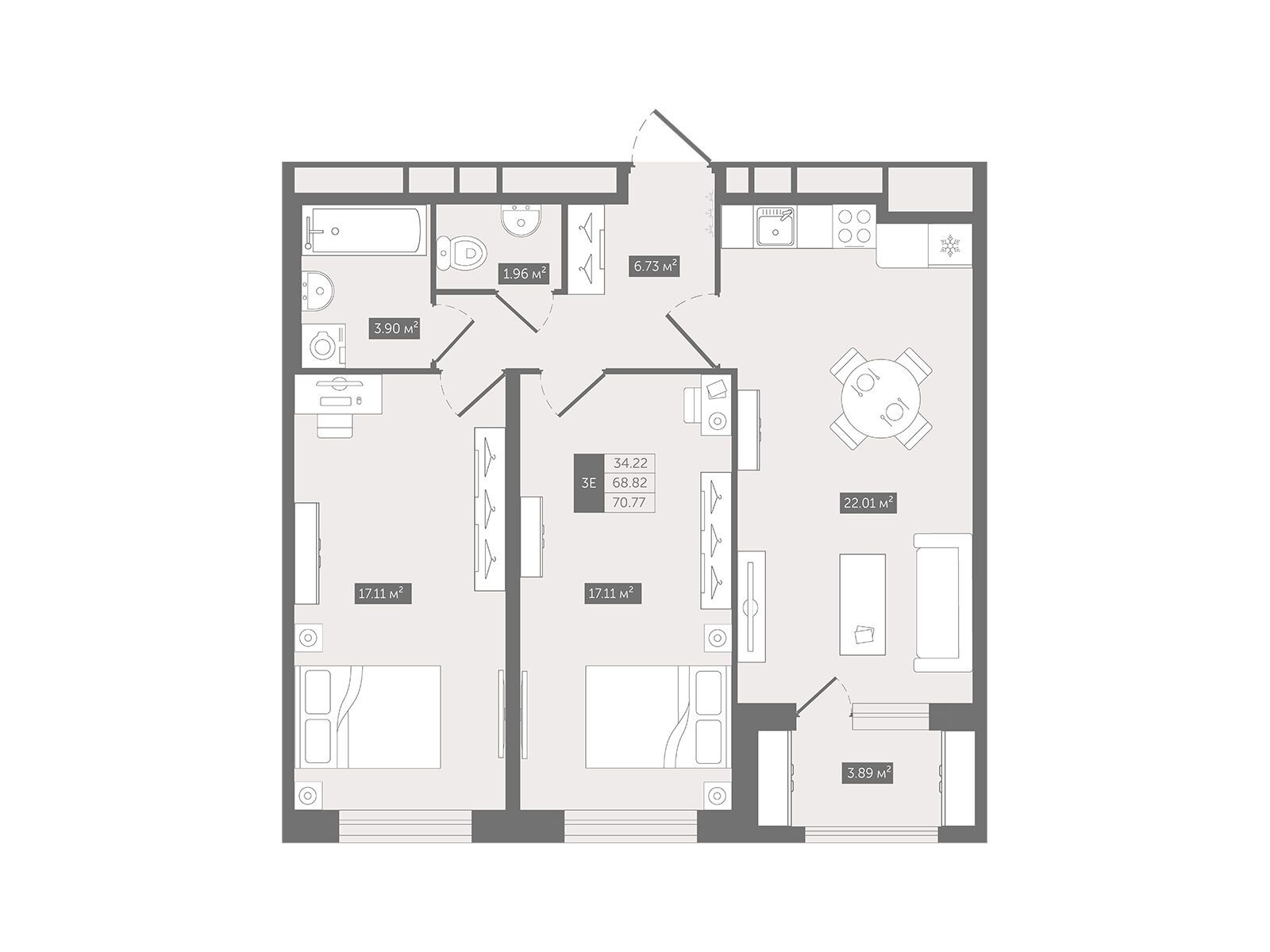 2-комнатная квартира, 71.93 м², 10 из 12 эт.