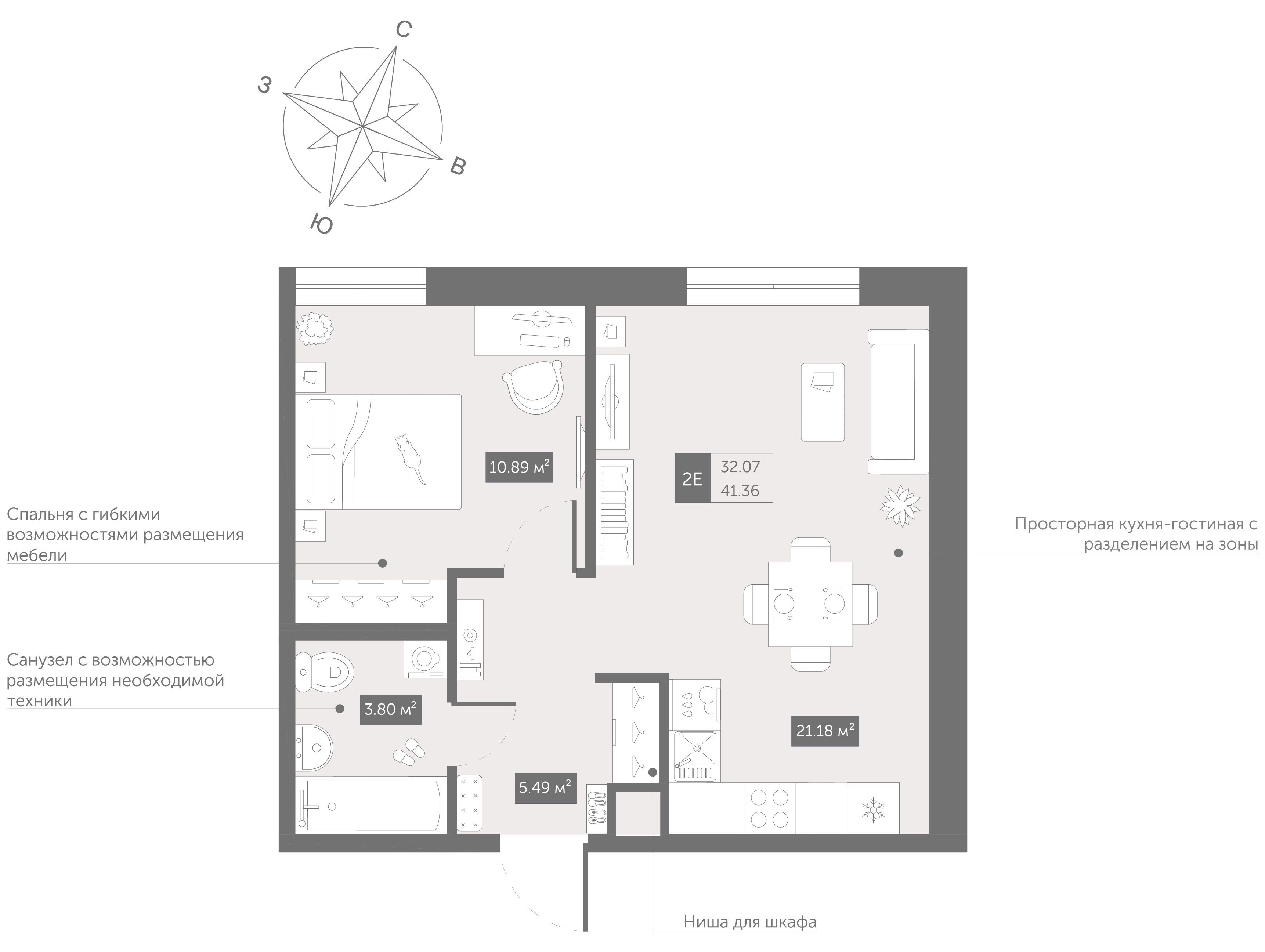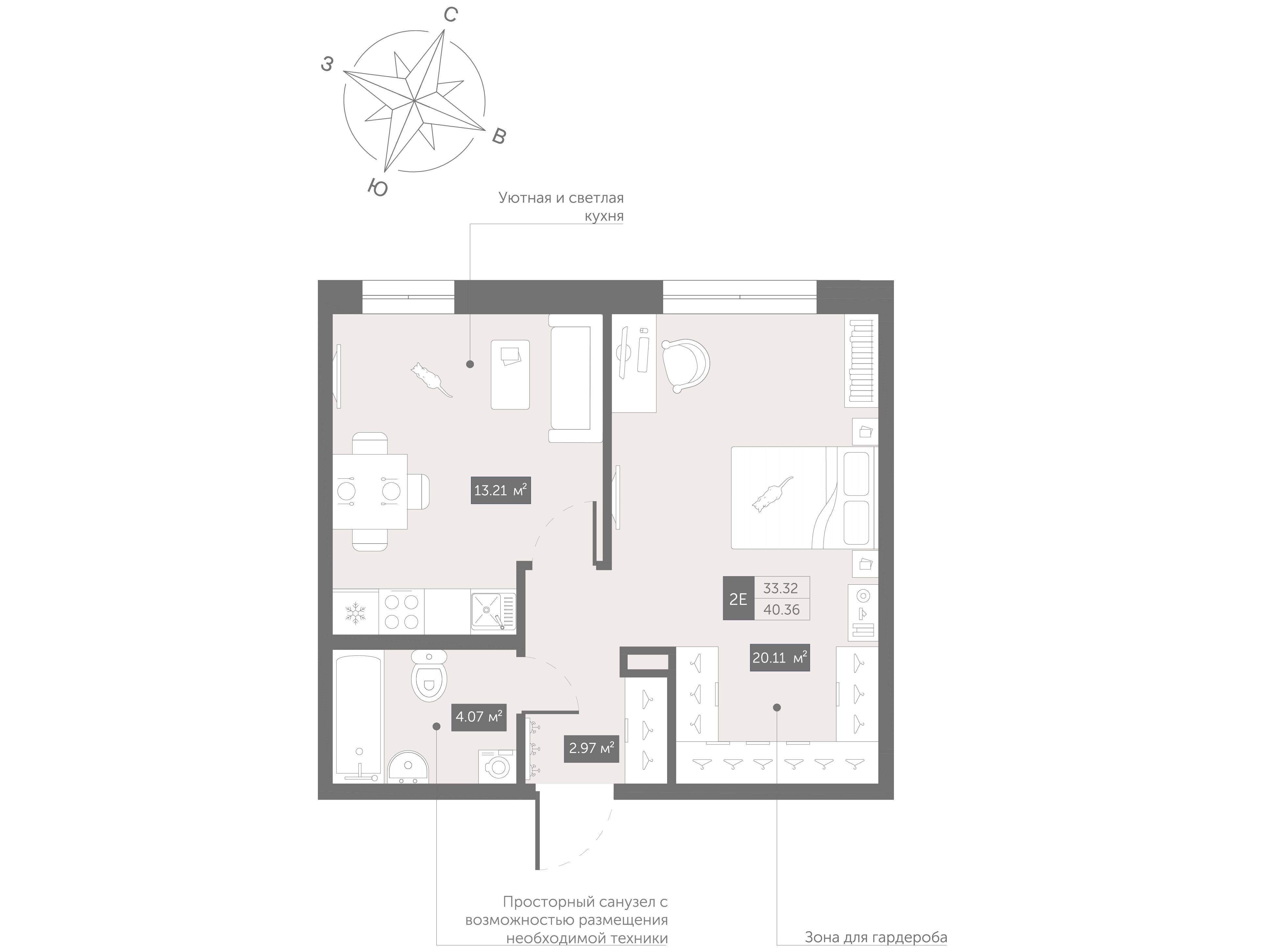1-комнатная квартира, 34.96 м², 12 из 13 эт.