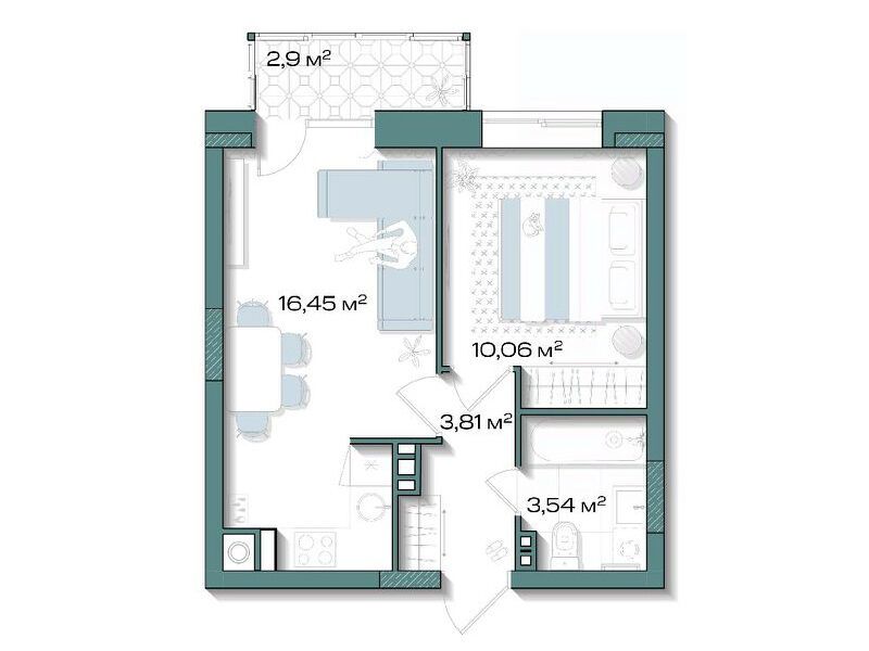 1-комнатная, 34.80 м²
