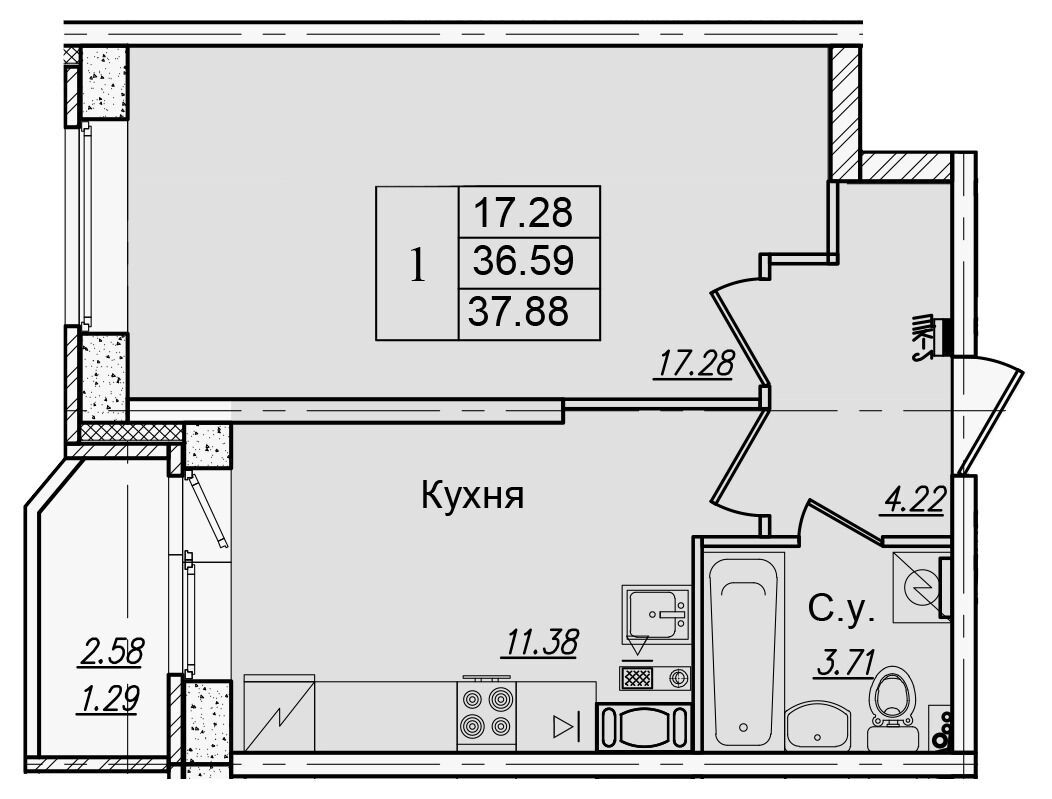 1-комнатная квартира, 33.50 м², 12 из 28 эт.