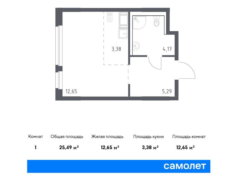 Студия, 24.90 м²