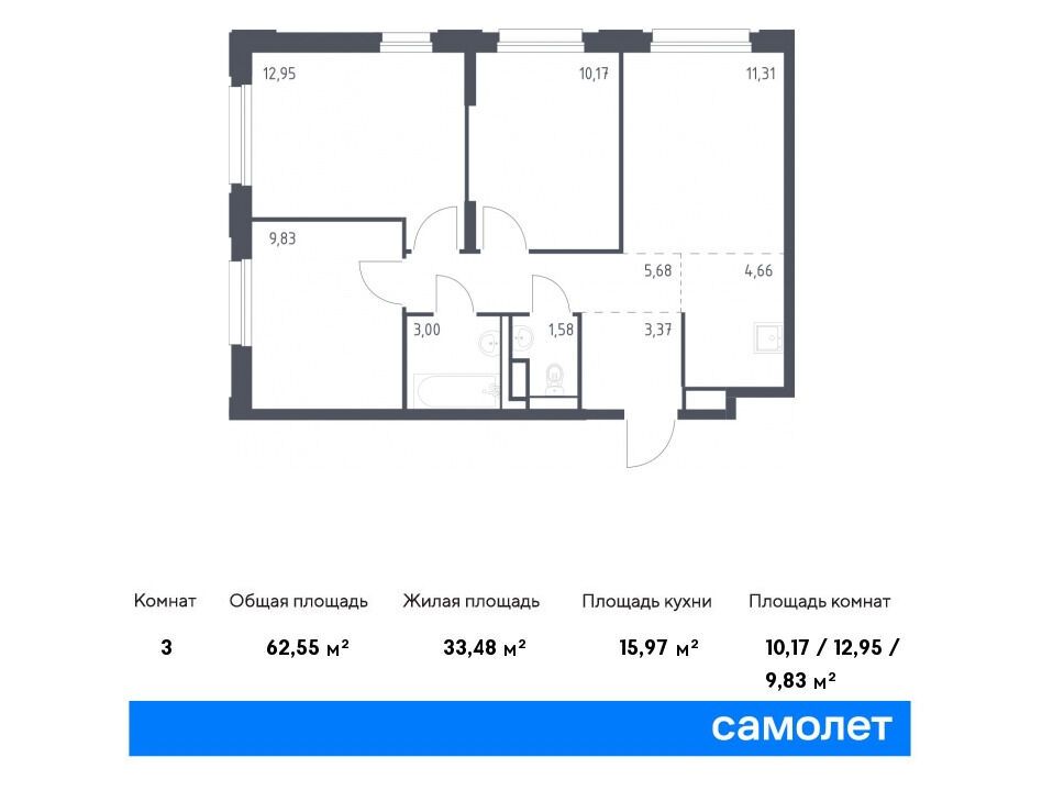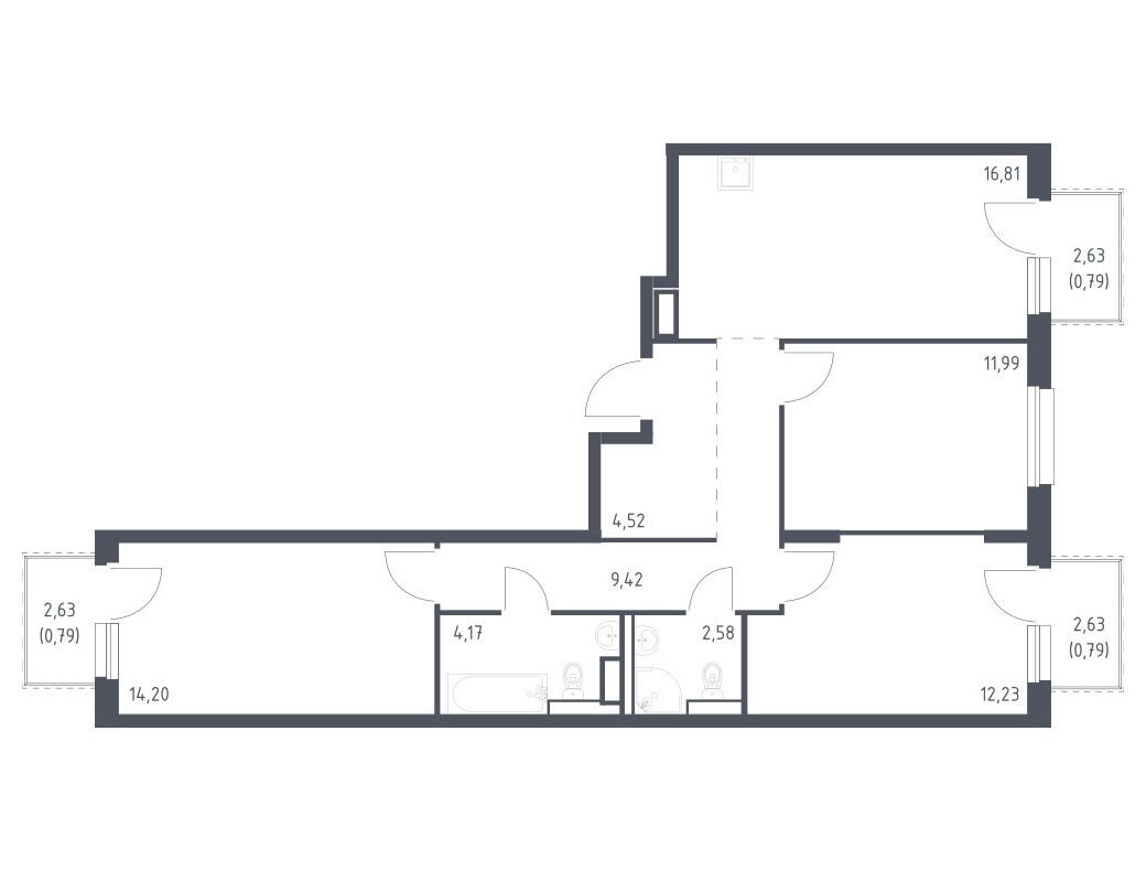 3-комнатная квартира, 75.93 м², 2 из 14 эт.