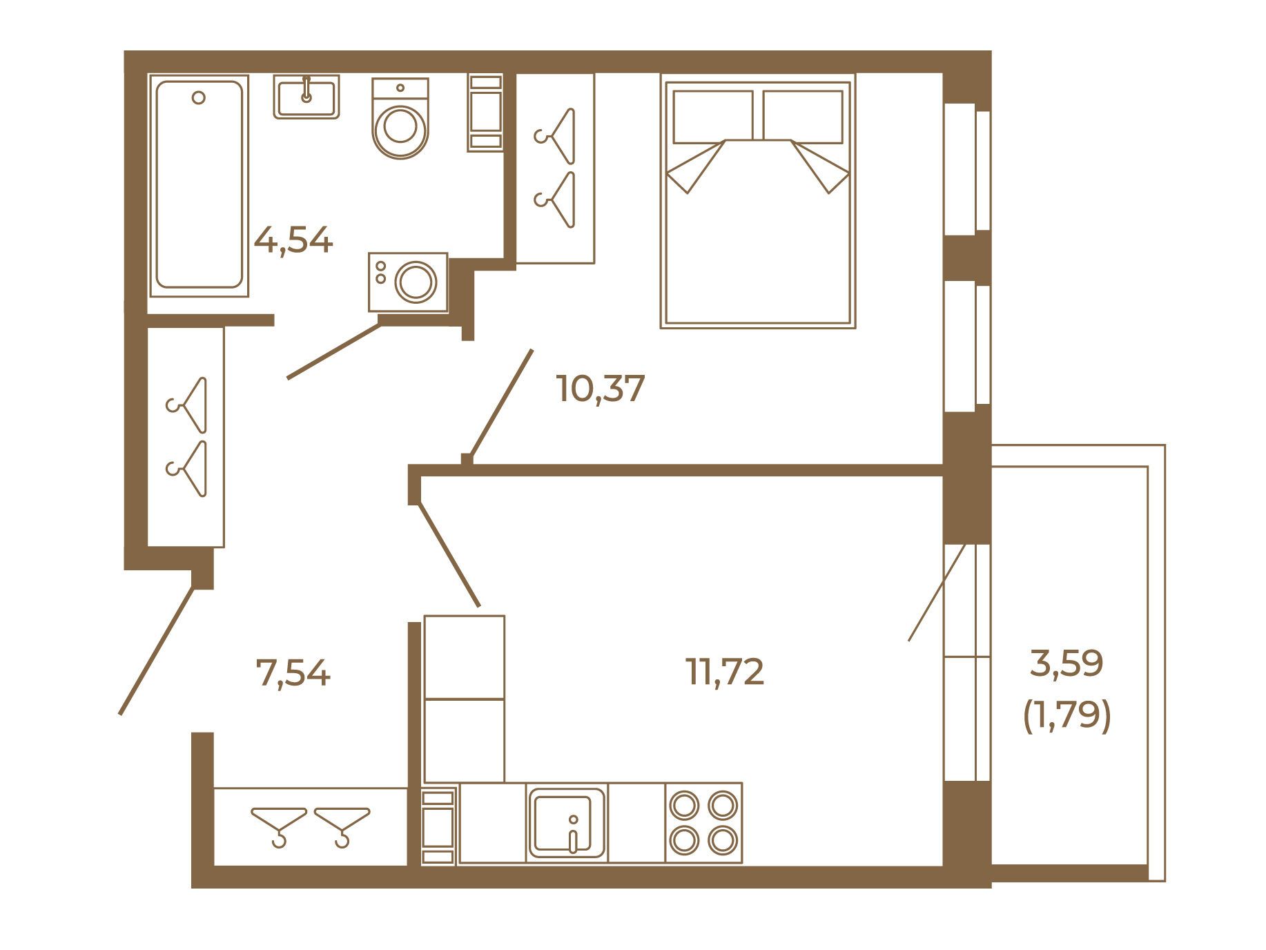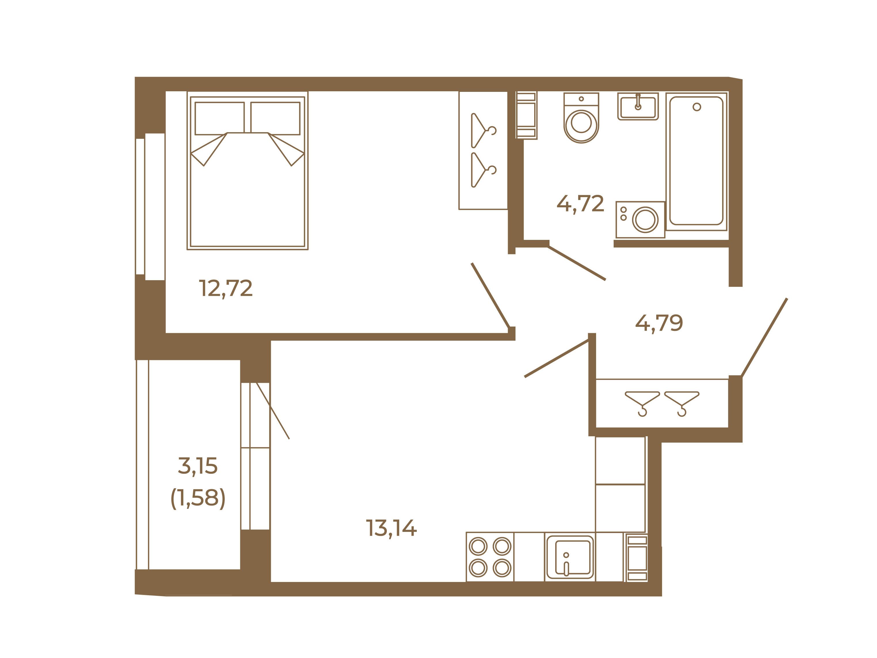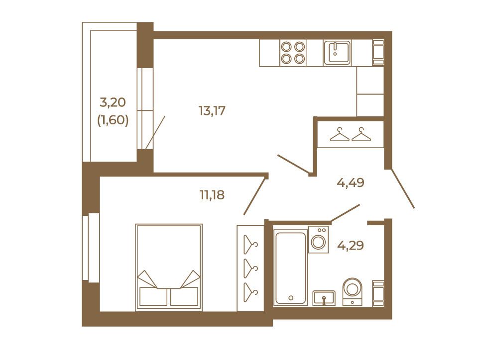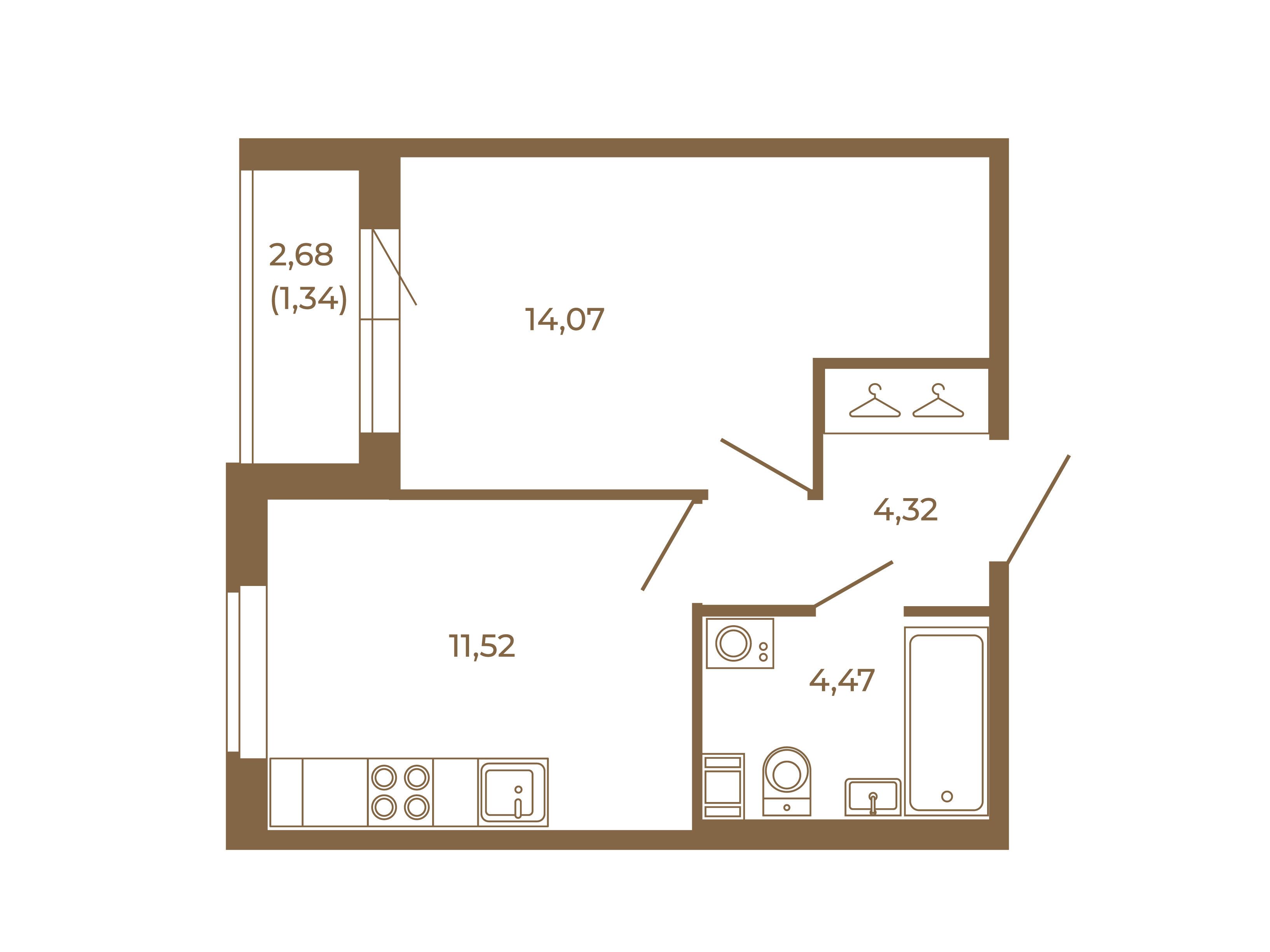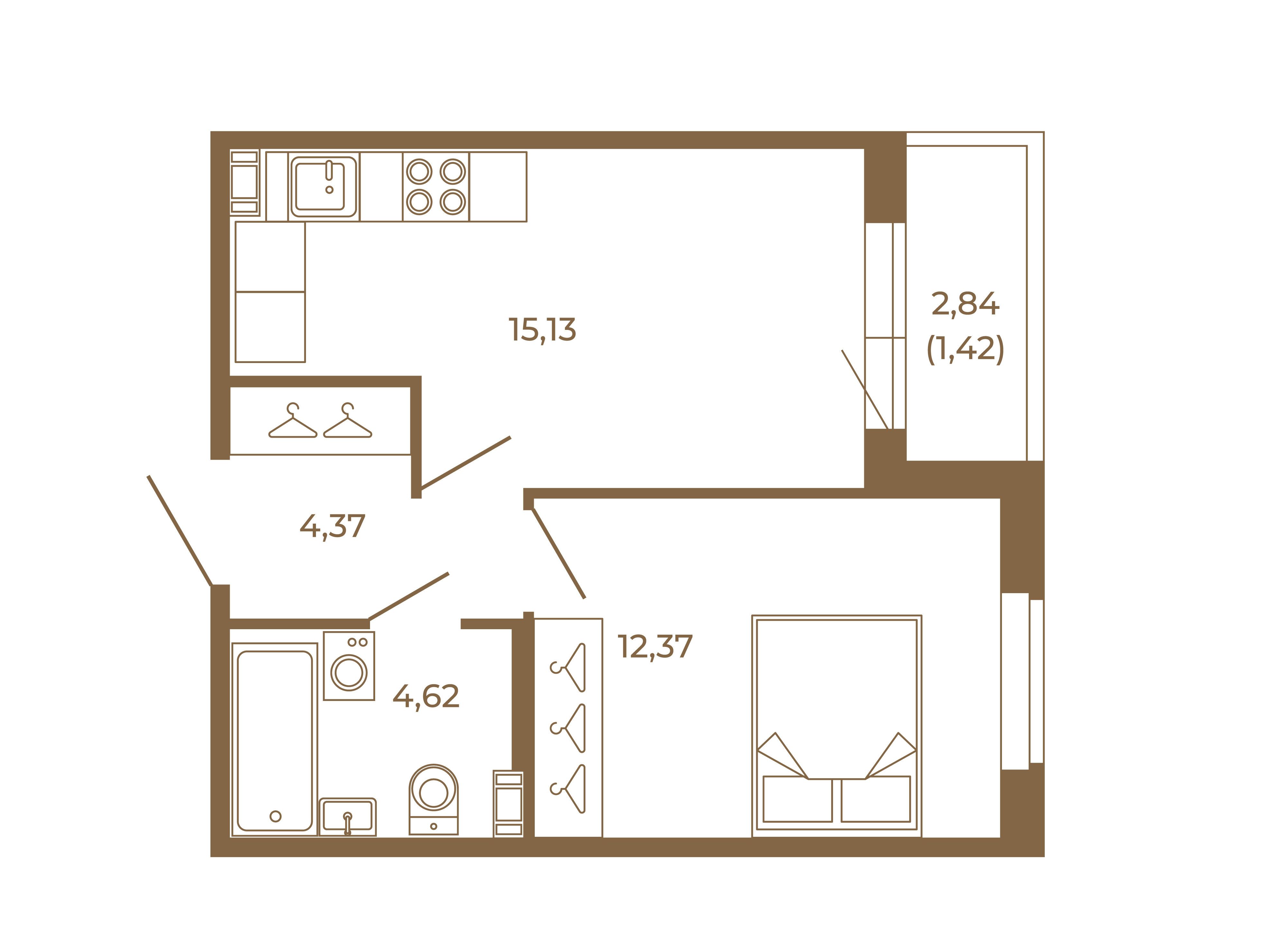 1-комнатная, 35.03 м²