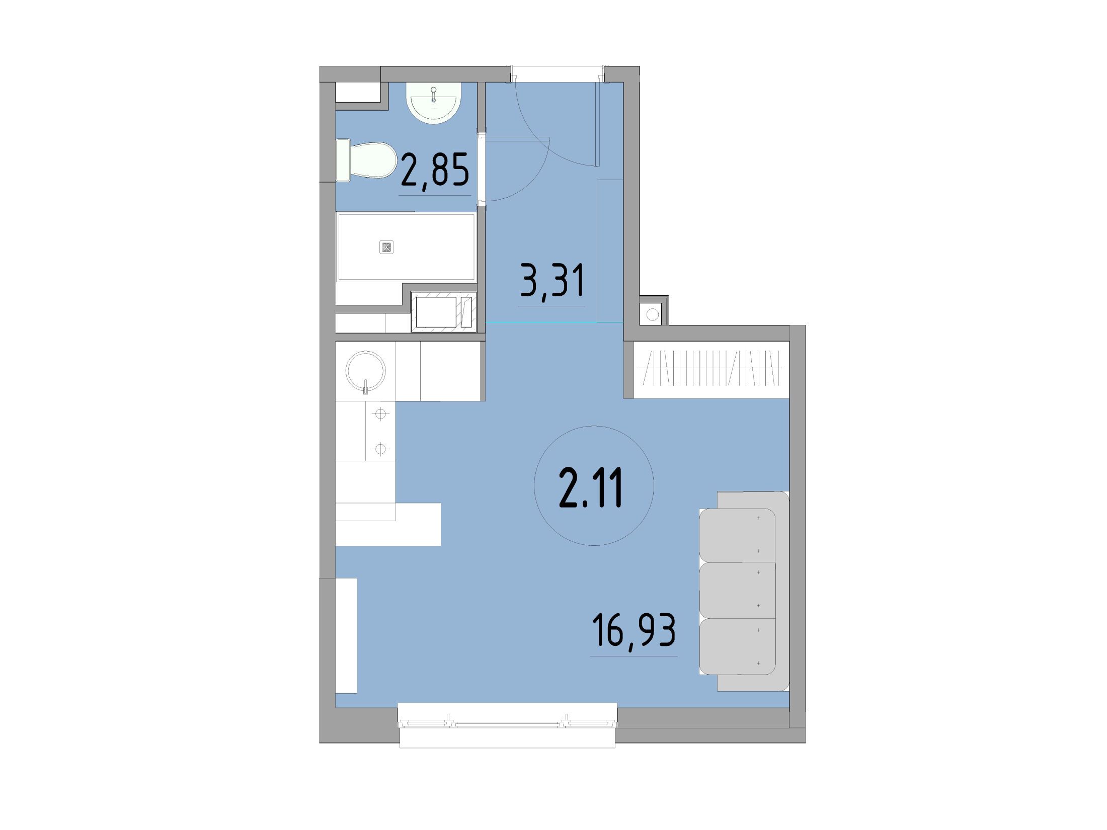 Студия, 24.93 м²
