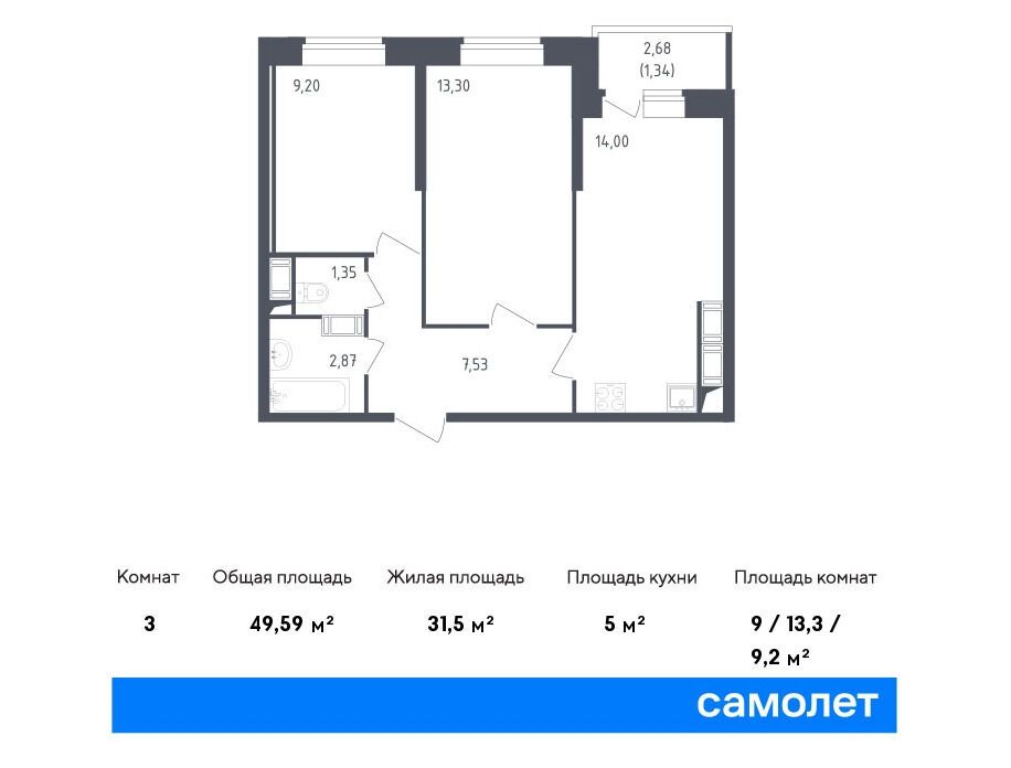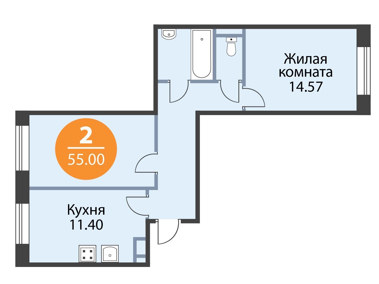 2-комнатная квартира, 49.20 м², 1 из 28 эт.