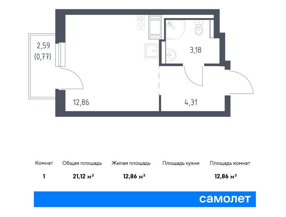 Студия, 25.99 м²
