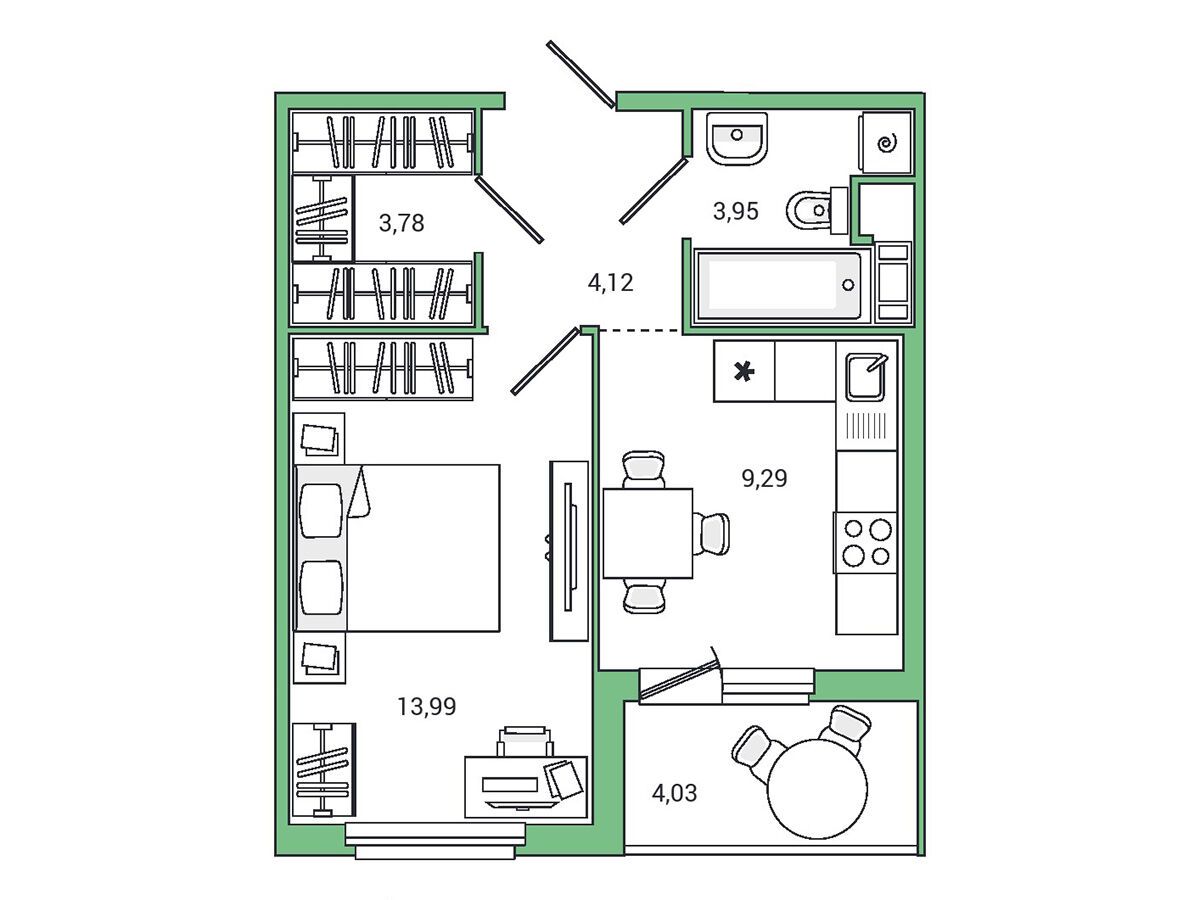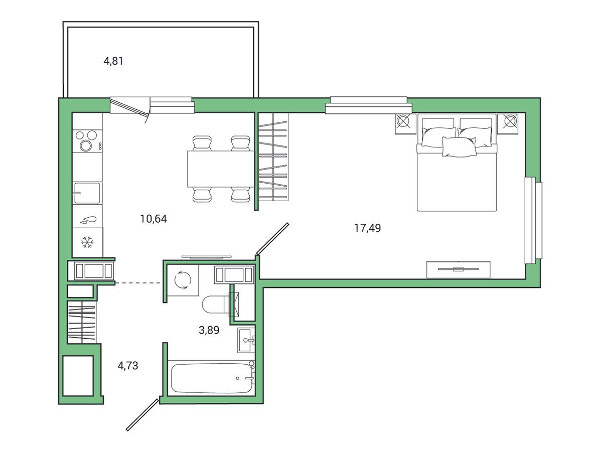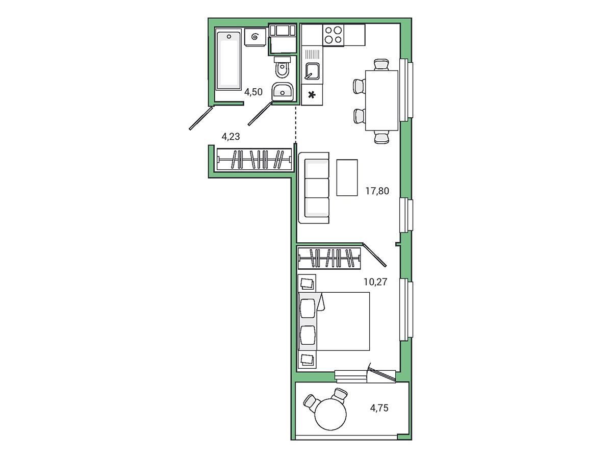 1-комнатная, 34.20 м²