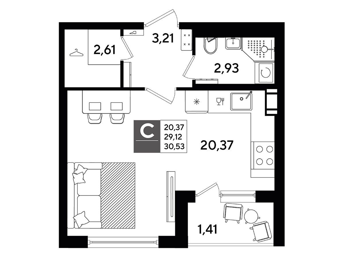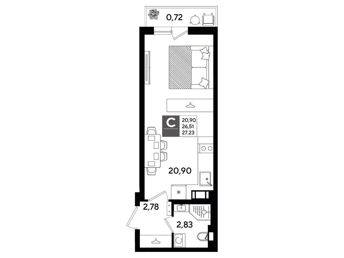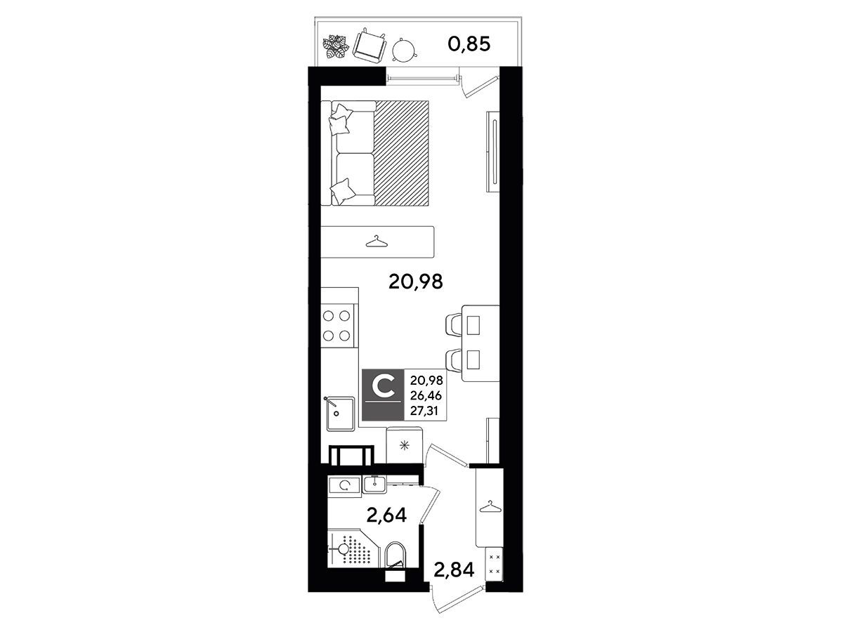 Студия, 28.03 м²