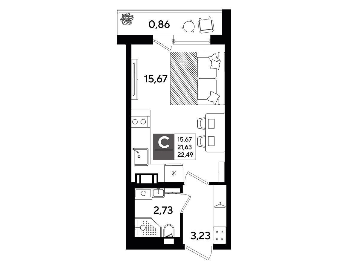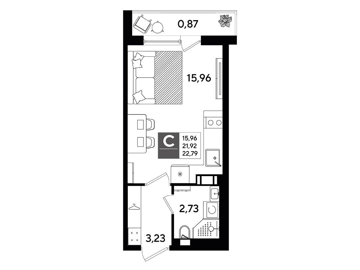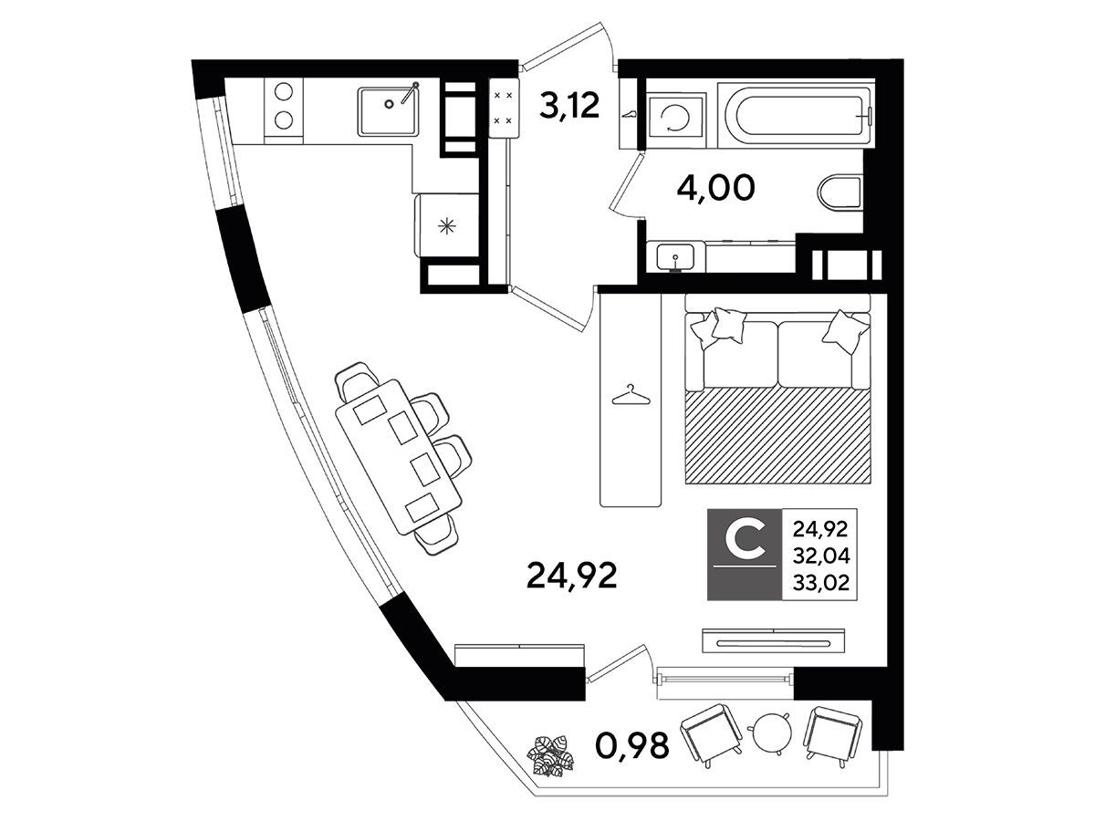 Студия, 28.03 м²